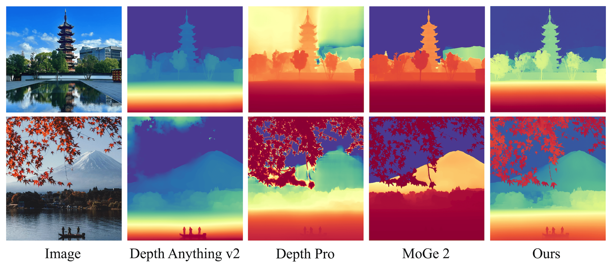 Pixel-Perfect Depth questioned the trend of latent-space predictions in monocular depth estimation, and shocked the community when it got a perfect (5,5,5,5) score at the last NeurIPS. By moving back to pixel space with a few tweaks, we finally have a way to generate depth maps that look clean while maintaining a fast runtime, which matters for real-world applications.